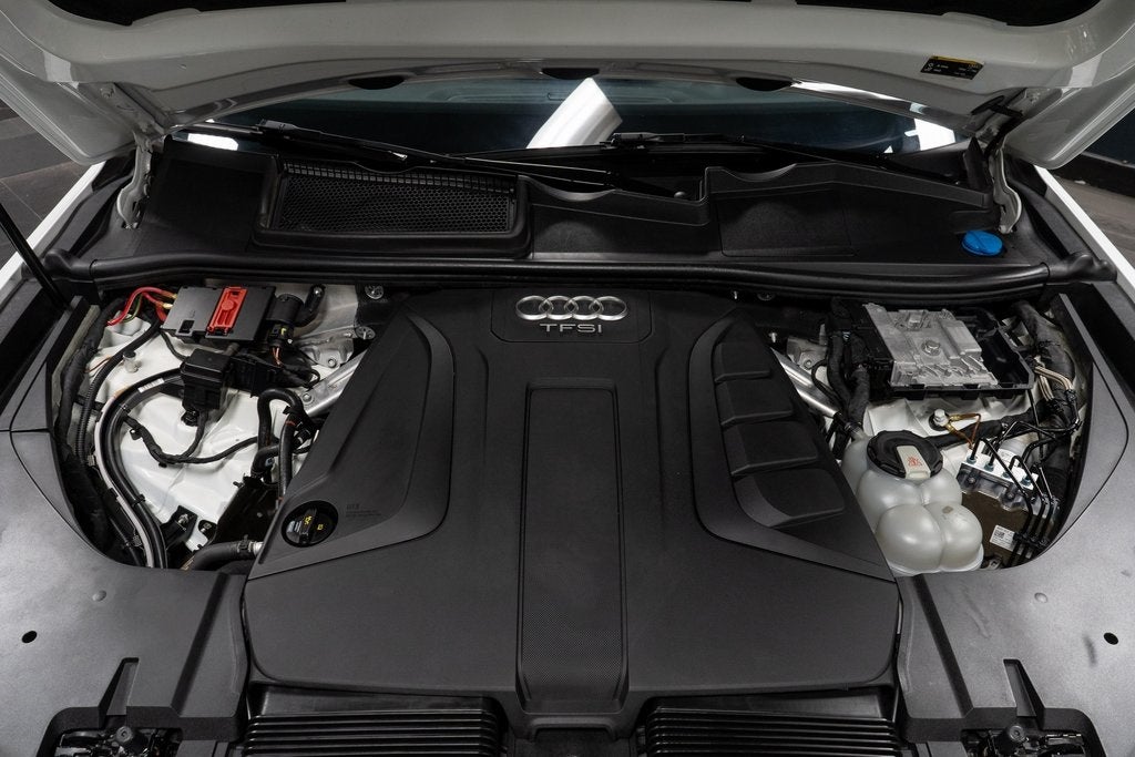 10 Speakers, 3.504 Axle Ratio, 3D Bose Surround Sound System, 3rd row seats: bench, 4-Wheel Disc Brakes, ABS brakes, Air Conditioning, Alloy wheels, AM/FM radio: SiriusXM, Auto-dimming Rear-View mirror, Automatic temperature control, Brake assist, Bumpers: body-color, CD player, Compass, Delay-off headlights, Driver door bin, Driver vanity mirror, Driver's Seat Mounted Armrest, Dual front impact airbags, Dual front side impact airbags, Electronic Stability Control, Exterior Parking Camera Rear, Four wheel independent suspension, Front anti-roll bar, Front Bucket Seats, Front dual zone A/C, Front fog lights, Front reading lights, Fully automatic headlights, Garage door transmitter: HomeLink, Genuine wood dashboard insert, Genuine wood door panel insert, Heated door mirrors, Heated Front Bucket Seats, Heated front seats, High intensity discharge headlights: Xenon plus, Illuminated entry, Leather Seating Surfaces, Leather Shift Knob, Leather steering wheel, Low tire pressure warning, Memory seat, Occupant sensing airbag, Outside temperature display, Overhead airbag, Panic alarm, Passenger door bin, Passenger seat mounted armrest, Passenger vanity mirror, Power door mirrors, Power driver seat, Power Liftgate, Power moonroof, Power passenger seat, Power steering, Power windows, Radio data system, Radio: MMI Radio Plus w/Audi Sound System, Rain sensing wipers, Rear air conditioning, Rear anti-roll bar, Rear fog lights, Rear reading lights, Rear seat center armrest, Rear window defroster, Rear window wiper, Remote keyless entry, Roof rack: rails only, Security system, Speed control, Speed-sensing steering, Split folding rear seat, Spoiler, Steering wheel mounted audio controls, Tachometer, Telescoping steering wheel, Tilt steering wheel, Traction control, Trip computer, Turn signal indicator mirrors, Variably intermittent wipers, and Wheels: 18 5-Arm-Design.