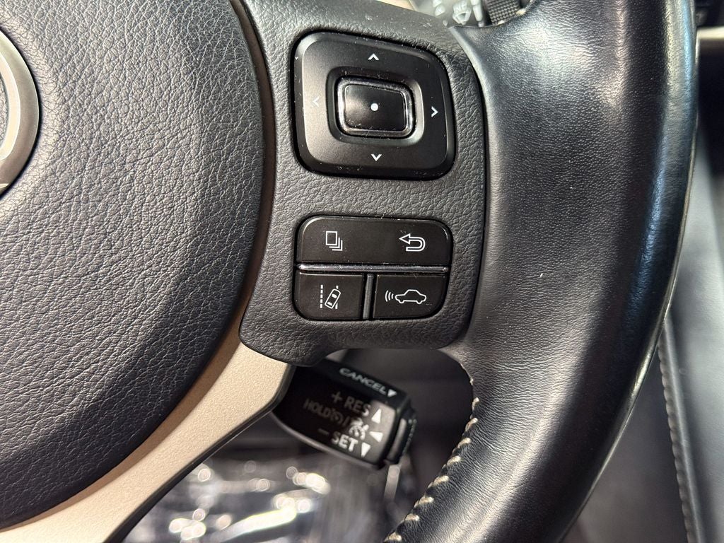 Black w/NuLuxe Seat Trim, 10 Speakers, 17 x 7.5 10-Spoke Aluminum Alloy Wheels, 4-Wheel Disc Brakes, ABS brakes, Air Conditioning, Alloy wheels, AM/FM radio: SiriusXM, Auto High-beam Headlights, Auto-dimming Rear-View mirror, Automatic temperature control, Brake assist, Bumpers: body-color, CD player, Compass, Delay-off headlights, Driver door bin, Driver vanity mirror, Dual front impact airbags, Dual front side impact airbags, Electronic Stability Control, Emergency communication system: Safety Connect, Four wheel independent suspension, Front anti-roll bar, Front Bucket Seats, Front Center Armrest, Front dual zone A/C, Front fog lights, Front Power Bucket Seats, Front reading lights, Fully automatic headlights, Garage door transmitter: HomeLink, Heated door mirrors, Illuminated entry, Knee airbag, Low tire pressure warning, NuLuxe Seat Trim, Occupant sensing airbag, Outside temperature display, Overhead airbag, Overhead console, Panic alarm, Passenger door bin, Passenger vanity mirror, Power door mirrors, Power driver seat, Power moonroof, Power passenger seat, Power steering, Power windows, Radio data system, Radio: Lexus Display Audio, Rear anti-roll bar, Rear reading lights, Rear seat center armrest, Rear side impact airbag, Rear window defroster, Remote keyless entry, Security system, Speed control, Speed-sensing steering, Speed-Sensitive Wipers, Split folding rear seat, Steering wheel mounted audio controls, Tachometer, Telescoping steering wheel, Tilt steering wheel, Traction control, Trip computer, Turn signal indicator mirrors, and Variably intermittent wipers.