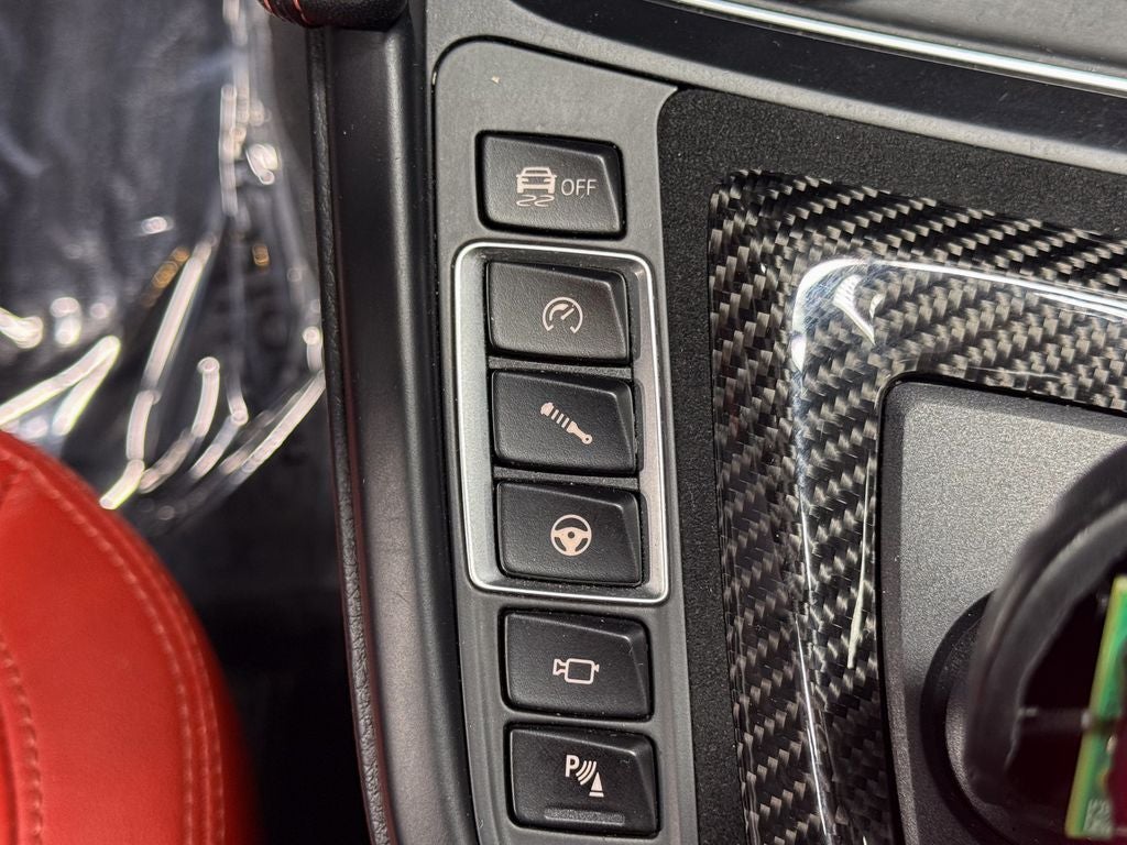 ABS brakes, Alloy wheels, DVD-Audio, Electronic Stability Control, Heated door mirrors, Heated front seats, Illuminated entry, Low tire pressure warning, Navigation System, Remote keyless entry, Traction control, 16 Speakers, 4-Wheel Disc Brakes, Adaptive suspension, Air Conditioning, AM/FM radio: SiriusXM, Auto-dimming door mirrors, Auto-dimming Rear-View mirror, Automatic temperature control, Brake assist, Bumpers: body-color, CD player, Delay-off headlights, Driver door bin, Driver vanity mirror, Dual front impact airbags, Dual front side impact airbags, Emergency communication system: BMW Assist eCall, Exterior Parking Camera Rear, Four wheel independent suspension, Front anti-roll bar, Front Bucket Seats, Front reading lights, Fully automatic headlights, Garage door transmitter, harman/kardon Surround Sound System, harman/kardon® Speakers, Knee airbag, Leather Shift Knob, Leather steering wheel, Memory seat, Occupant sensing airbag, Outside temperature display, Overhead airbag, Panic alarm, Passenger door bin, Passenger vanity mirror, Power door mirrors, Power driver seat, Power passenger seat, Power steering, Power windows, Radio data system, Radio: AM/FM Audio System, Rain sensing wipers, Rear anti-roll bar, Rear reading lights, Rear seat center armrest, Rear window defroster, Security system, SiriusXM Satellite Radio, Speed control, Speed-sensing steering, Speed-Sensitive Wipers, Split folding rear seat, Spoiler, Sport steering wheel, Steering wheel mounted audio controls, Tachometer, Telescoping steering wheel, Tilt steering wheel, Trip computer, Turn signal indicator mirrors, and Variably intermittent wipers.