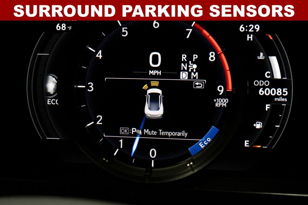 Convenience Package (Blind Spot Monitor and Front & Rear Clearance Backup Sonar), Touring Package (Alcantara Head Liner, Heated & Ventilated Front Bucket Seats, Radio: Mark Levinson Premium Surround Sound System, and Semi Aniline Leather Seat Surfaces), Color Heads Up Display, Illuminated Door Sills, Wheels: 20 10-Spoke Forged Aluminum Alloy, 12 Speakers, 4-Wheel Disc Brakes, ABS brakes, Adaptive suspension, Air Conditioning, AM/FM radio: SiriusXM, Auto High-beam Headlights, Auto tilt-away steering wheel, Auto-dimming door mirrors, Auto-dimming Rear-View mirror, Automatic temperature control, Brake assist, Bumpers: body-color, Compass, Delay-off headlights, Driver door bin, Driver vanity mirror, Dual front impact airbags, Dual front side impact airbags, Electronic Stability Control, Emergency communication system: Safety Connect, Exterior Parking Camera Rear, Four wheel independent suspension, Front anti-roll bar, Front Bucket Seats, Front Center Armrest, Front dual zone A/C, Front reading lights, Garage door transmitter: HomeLink, Illuminated entry, Knee airbag, Leather Seat Surfaces, Leather Shift Knob, Low tire pressure warning, Memory seat, Navigation System, Occupant sensing airbag, Outside temperature display, Overhead airbag, Panic alarm, Passenger door bin, Passenger vanity mirror, Power door mirrors, Power driver seat, Power passenger seat, Power steering, Power windows, Radio data system, Radio: Lexus Premium Audio, Rain sensing wipers, Rear anti-roll bar, Rear window defroster, Remote keyless entry, Security system, Speed control, Speed-sensing steering, Speed-Sensitive Wipers, Steering wheel memory, Steering wheel mounted audio controls, Tachometer, Telescoping steering wheel, Tilt steering wheel, Traction control, Trip computer, Turn signal indicator mirrors, and Variably intermittent wipers.