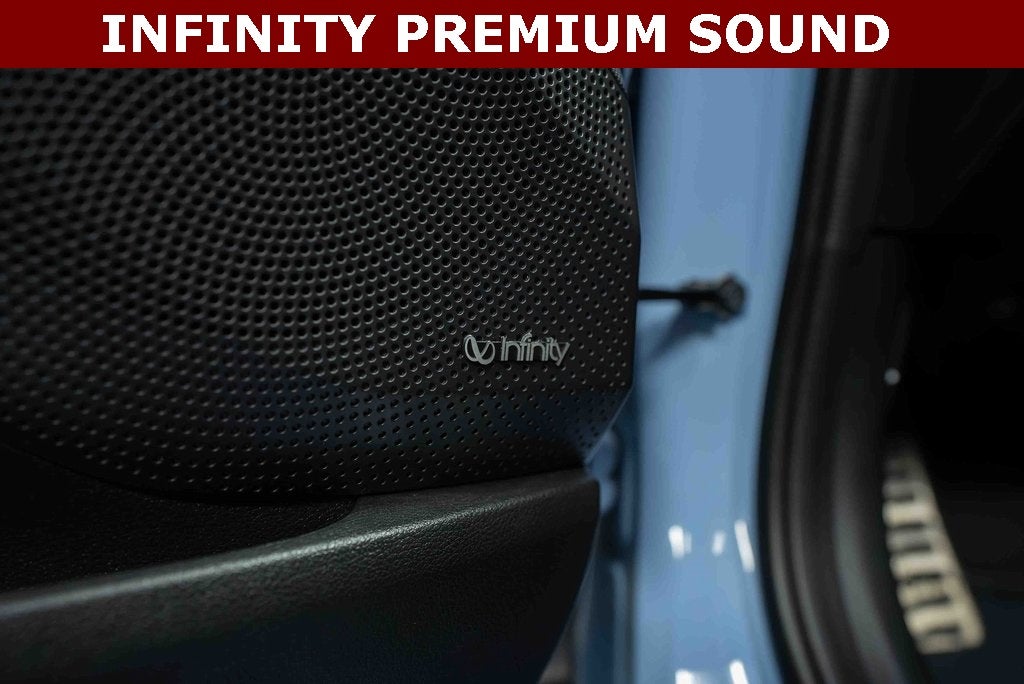 - Radio: AM/FM 8" Display Audio -inc: Infinity premium audio w/external amp, 8 speakers including subwoofer, SiriusXM satellite radio, Bluetooth® hands free phone w/voice recognition, Apple CarPlay, Android Auto, Blue Link (Gen2), rearview camera w/dynamic guidelines, Smartphone/MP3 auxiliary input jack, dual USB chargers and speed sensitive auto volume control