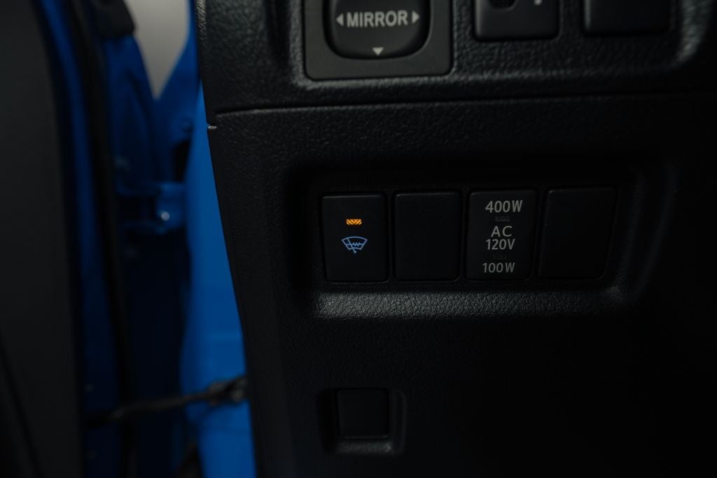 Black, 17 x 7.0 6-Spoke Alloy Wheels, ABS brakes, Alloy wheels, Electronic Stability Control, Heated door mirrors, Illuminated entry, Low tire pressure warning, Remote keyless entry, Traction control, 3.727 Axle Ratio, 4-Wheel Disc Brakes, 8 Speakers, Air Conditioning, AM/FM radio: SiriusXM, Anti-whiplash front head restraints, Brake assist, Bumpers: body-color, CD player, Driver door bin, Driver vanity mirror, Dual front impact airbags, Dual front side impact airbags, Emergency communication system: Safety Connect, Exterior Parking Camera Rear, Front anti-roll bar, Front Bucket Seats, Front Center Armrest, Front fog lights, Front reading lights, Front wheel independent suspension, Knee airbag, Leather Shift Knob, Leather steering wheel, Low Fabric Seat Trim, Occupant sensing airbag, Outside temperature display, Overhead airbag, Overhead console, Panic alarm, Passenger door bin, Passenger vanity mirror, Power door mirrors, Power driver seat, Power steering, Power windows, Radio: Entune Audio Plus, Rear anti-roll bar, Rear seat center armrest, Rear window defroster, Rear window wiper, Roof rack: rails only, Security system, Speed control, Speed-sensing steering, Split folding rear seat, Spoiler, Steering wheel mounted audio controls, Tachometer, Telescoping steering wheel, Tilt steering wheel, Trip computer, and Variably intermittent wipers.