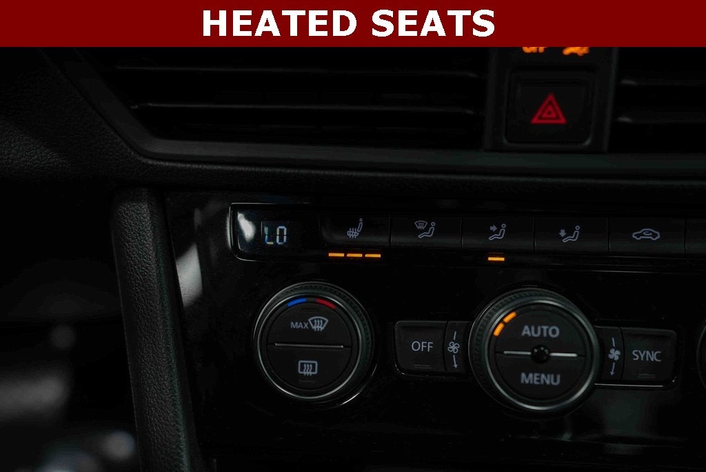 Titan Black Premium Synthetic, 4 Speakers, 4-Wheel Disc Brakes, ABS brakes, Air Conditioning, Alloy wheels, AM/FM radio, Automatic temperature control, Brake assist, Bumpers: body-color, Delay-off headlights, Driver door bin, Driver vanity mirror, Dual front impact airbags, Dual front side impact airbags, Electronic Stability Control, Emergency communication system: VW Car-Net services (capabilities require enrollment or subscription), Exterior Parking Camera Rear, First Aid Kit, Front anti-roll bar, Front Bucket Seats, Front Center Armrest, Front dual zone A/C, Front reading lights, Front wheel independent suspension, Fully automatic headlights, Heated door mirrors, Heated Front Comfort Seats, Heated front seats, Heavy Duty Trunk Liner w/VW CarGo Blocks, Illuminated entry, Leather Shift Knob, Low tire pressure warning, Monster Mats w/Logo Rubber Mats Kit (Set of 4), Occupant sensing airbag, Outside temperature display, Overhead airbag, Overhead console, Panic alarm, Passenger door bin, Passenger vanity mirror, Perforated V-Tex Leatherette Seat Trim, Power door mirrors, Power moonroof, Power steering, Power windows, Radio data system, Radio: Composition Color w/6.5 Touchscreen, Rear anti-roll bar, Rear reading lights, Rear seat center armrest, Rear window defroster, Remote keyless entry, Roadside Assistance Kit, Speed control, Speed-sensing steering, Split folding rear seat, Steering wheel mounted audio controls, Tachometer, Telescoping steering wheel, Tilt steering wheel, Traction control, Trip computer, Variably intermittent wipers, VW App-Connect (w/Apple CarPlay, Android Auto & MirrorLink), VW Care, and Wheels: 16 2-Tone Machined Alloy.