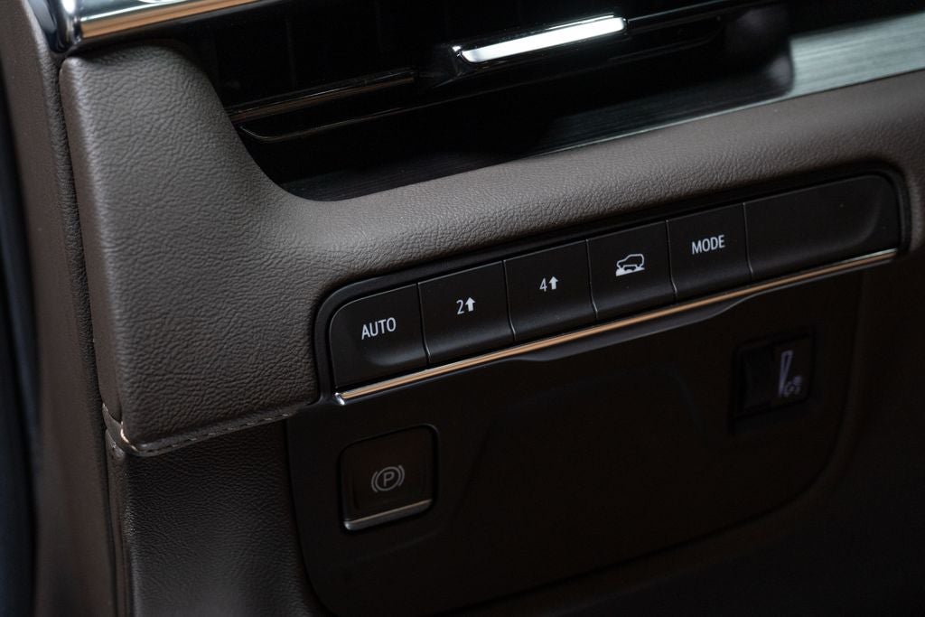 All-Weather Floor Liner Package (LPO), Floor Liner Package (LPO) (All-Weather Integrated Cargo Liner (LPO)), Preferred Equipment Group 1SB (Adaptive Cruise Control, AKG Studio 19-Speaker Audio System, Automatic Seat Belt Tightening, Automatic Stop/Start, Door Lock & Latch Shields, Enhanced Automatic Emergency Braking, Enhanced Automatic Parking Assist, Glass Breakage Sensor, Heated & Ventilated Driver & Front Passenger Seats, Lane Change Alert w/Side Blind Zone Alert, Mechanical Limited-Slip Differential, Power Panoramic Tilt-Sliding Sunroof, Rear Camera Mirror, Rear Camera Mirror Washer, Rear Cross Traffic Alert, Reconfigurable Full-Color Head-Up Display, Reverse Automatic Braking, Running Board Assist Steps, Start/Stop System Disable Button, Theft-Deterrent Alarm System, Vehicle Inclination Sensor, and Vehicle Interior Movement Sensor), 4WD, Navigation System, 16.9 Diagonal OLED Infotainment Screen, 19 Speakers, 2-Presets Memory For Driver Seat Adjuster, 3.23 Axle Ratio, 3rd row seats: split-bench, 4-Wheel Disc Brakes, 8-Way Power Driver Seat Adjuster, 8-Way Power Front Passenger Seat Adjuster, ABS brakes, Air Conditioning, Alloy wheels, AM/FM radio: SiriusXM with 360L, Apple CarPlay/Android Auto, Audio memory, Auto High-beam Headlights, Auto tilt-away steering wheel, Auto-dimming door mirrors, Automatic temperature control, Brake assist, Bumpers: body-color, Compass, Delay-off headlights, Driver door bin, Driver vanity mirror, Dual front impact airbags, Dual front side impact airbags, Electronic Stability Control, Emergency communication system: OnStar and Cadillac connected services capable, Four wheel independent suspension, Front anti-roll bar, Front Bucket Seats, Front Center Armrest w/Storage, Front dual zone A/C, Front License Plate Bracket, Front reading lights, Fully automatic headlights, Garage door transmitter, HD Radio, Heads-Up Display, Heated door mirrors, Heated Driver & Front Passenger Seats, Heated front seats, Heated rear seats, Heated steering wheel, Illuminated entry, Leather Seating Surfaces w/Mini-Chevron Perf Inserts, Leather steering wheel, Low tire pressure warning, Memory seat, Not Equipped w/4-Way Driver & Fr Pass Pwr Lumbar, Not Equipped w/Steering Column Lock, Occupant sensing airbag, Outside temperature display, Overhead airbag, Overhead console, Panic alarm, Passenger door bin, Passenger vanity mirror, Power door mirrors, Power driver seat, Power Liftgate, Power moonroof, Power passenger seat, Power steering, Power windows, Premium Smooth Ride Suspension, Radio data system, Radio: AM/FM/SiriusXM w/Navigation, Rain sensing wipers, Rear air conditioning, Rear anti-roll bar, Rear reading lights, Rear window defroster, Rear window wiper, Remote keyless entry, Roof ra