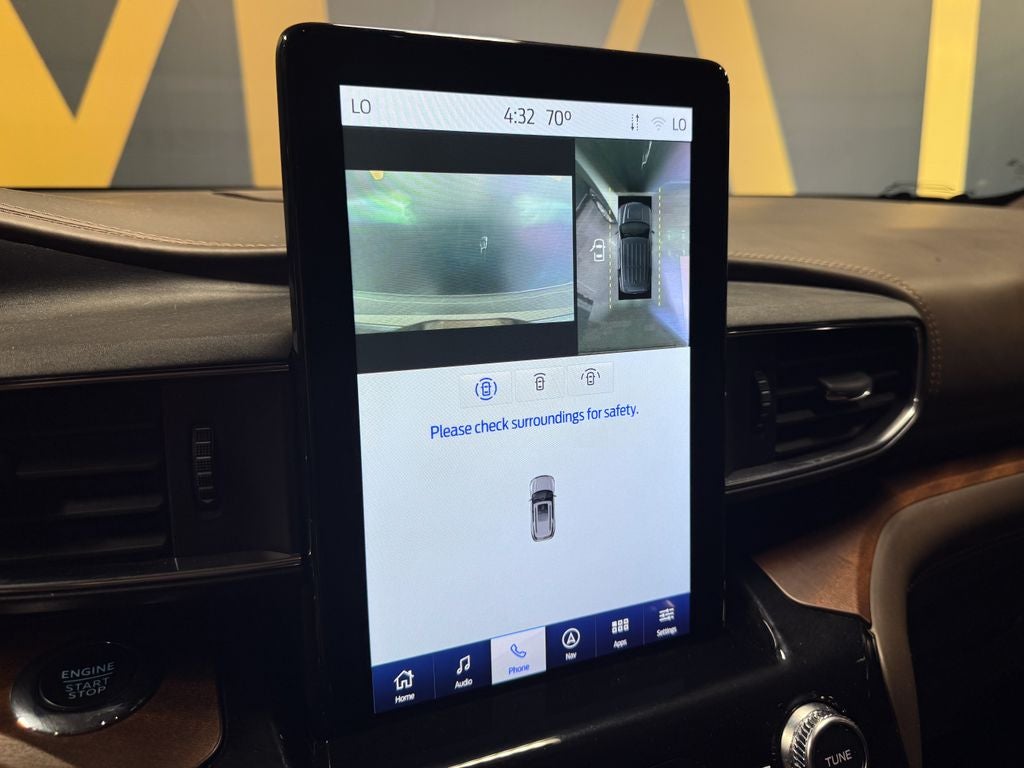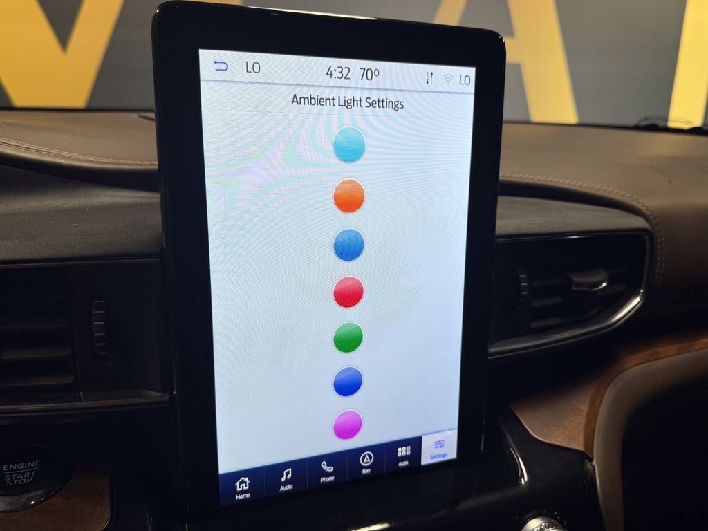 Class IV Trailer Tow Package, Equipment Group 701A, 12 Speakers, 1st Row Heated Seats, 3.31 Non-Limited-Slip Rear Axle Ratio, 3rd row seats: bench, 4-Wheel Disc Brakes, ABS brakes, Air Conditioning, Alloy wheels, AM/FM radio: SiriusXM, Auto High-beam Headlights, Auto-dimming door mirrors, Auto-dimming Rear-View mirror, Automatic temperature control, Brake assist, Bumpers: body-color, Compass, Delay-off headlights, Driver door bin, Driver vanity mirror, Dual front impact airbags, Dual front side impact airbags, Electronic Stability Control, Emergency communication system: SYNC 3 911 Assist, Exterior Parking Camera Rear, FordPass Connect, Four wheel independent suspension, Front anti-roll bar, Front Bucket Seats, Front Center Armrest, Front dual zone A/C, Front fog lights, Front reading lights, Fully automatic headlights, Garage door transmitter, Genuine wood dashboard insert, Hands-Free Liftgate Delete, Heated door mirrors, Heated front seats, Heated rear seats, Heated steering wheel, Illuminated entry, Knee airbag, Leather steering wheel, Low tire pressure warning, Memory seat, Navigation System, Occupant sensing airbag, Outside temperature display, Overhead airbag, Overhead console, Panic alarm, Passenger door bin, Passenger vanity mirror, Power door mirrors, Power driver seat, Power Liftgate, Power passenger seat, Power steering, Power windows, Radio data system, Radio: B&O Sound System by Bang & Olufsen, Rain sensing wipers, Rear air conditioning, Rear anti-roll bar, Rear Auxiliary Controls Credit, Rear reading lights, Rear window defroster, Rear window wiper, Remote keyless entry, Roof rack: rails only, Security system, Speed control, Speed-sensing steering, Speed-Sensitive Wipers, Split folding rear seat, Spoiler, Steering wheel memory, Steering wheel mounted audio controls, SYNC 3 Communications & Entertainment System, SYNC 3/Apple CarPlay/Android Auto, Tachometer, Telescoping steering wheel, Tilt steering wheel, Traction control, Trip computer, Turn signal indicator mirrors, Twin Panel Moonroof, Variably intermittent wipers, Ventilated front seats, Voice-Activated Touchscreen Navigation System, and Wheels: 20 10-Spoke Aluminum w/KR Center Cap.