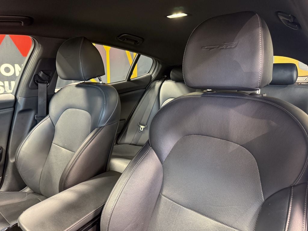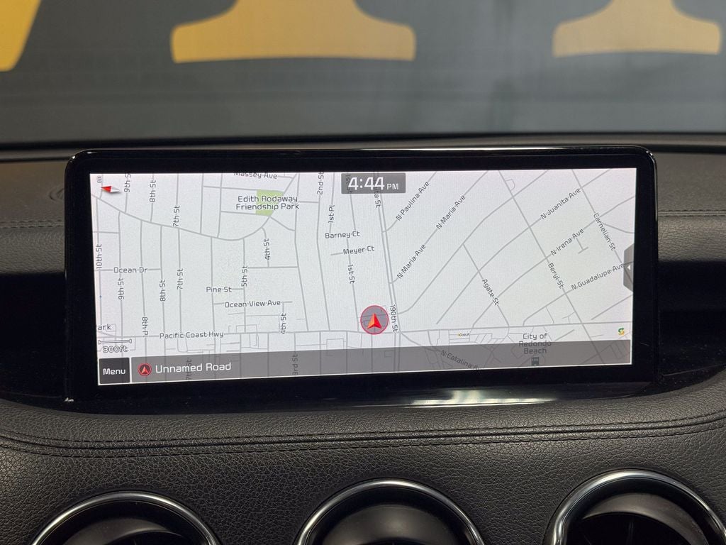 4-Wheel Disc Brakes, 9 Speakers, ABS brakes, Air Conditioning, Alloy wheels, AM/FM radio: SiriusXM, Anti-whiplash front head restraints, Apple CarPlay & Android Auto, Auto High-beam Headlights, Auto-dimming Rear-View mirror, Automatic temperature control, Brake assist, Bumpers: body-color, Delay-off headlights, Driver door bin, Driver vanity mirror, Dual front impact airbags, Dual front side impact airbags, Electronic Stability Control, Emergency communication system: UVO eServices, Exterior Parking Camera Rear, Four wheel independent suspension, Front anti-roll bar, Front Bucket Seats, Front Center Armrest, Front dual zone A/C, Front reading lights, Fully automatic headlights, Heated door mirrors, Heated Front Bucket Seats, Heated front seats, Illuminated entry, Knee airbag, Leather Seat Trim, Low tire pressure warning, Navigation System, Occupant sensing airbag, Outside temperature display, Overhead airbag, Overhead console, Panic alarm, Passenger door bin, Passenger vanity mirror, Power door mirrors, Power driver seat, Power steering, Power windows, Radio: AM/FM/HD Audio System, Rain sensing wipers, Rear air conditioning, Rear anti-roll bar, Rear seat center armrest, Rear window defroster, Remote keyless entry, Security system, Smart Key w/ Push Button and Remote Start, Speed control, Speed-Sensitive Wipers, Split folding rear seat, Sport steering wheel, Steering wheel mounted audio controls, Tachometer, Telescoping steering wheel, Tilt steering wheel, Traction control, Trip computer, Turn signal indicator mirrors, Variably intermittent wipers, and Wheels: 8.0J x 18 Alloy.