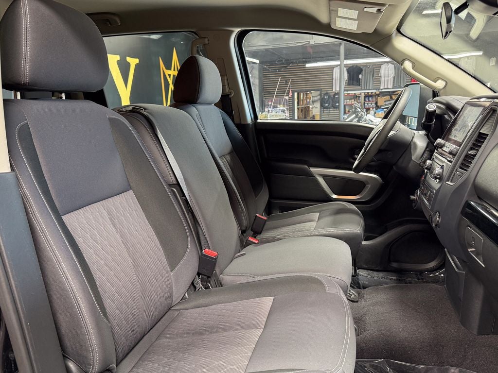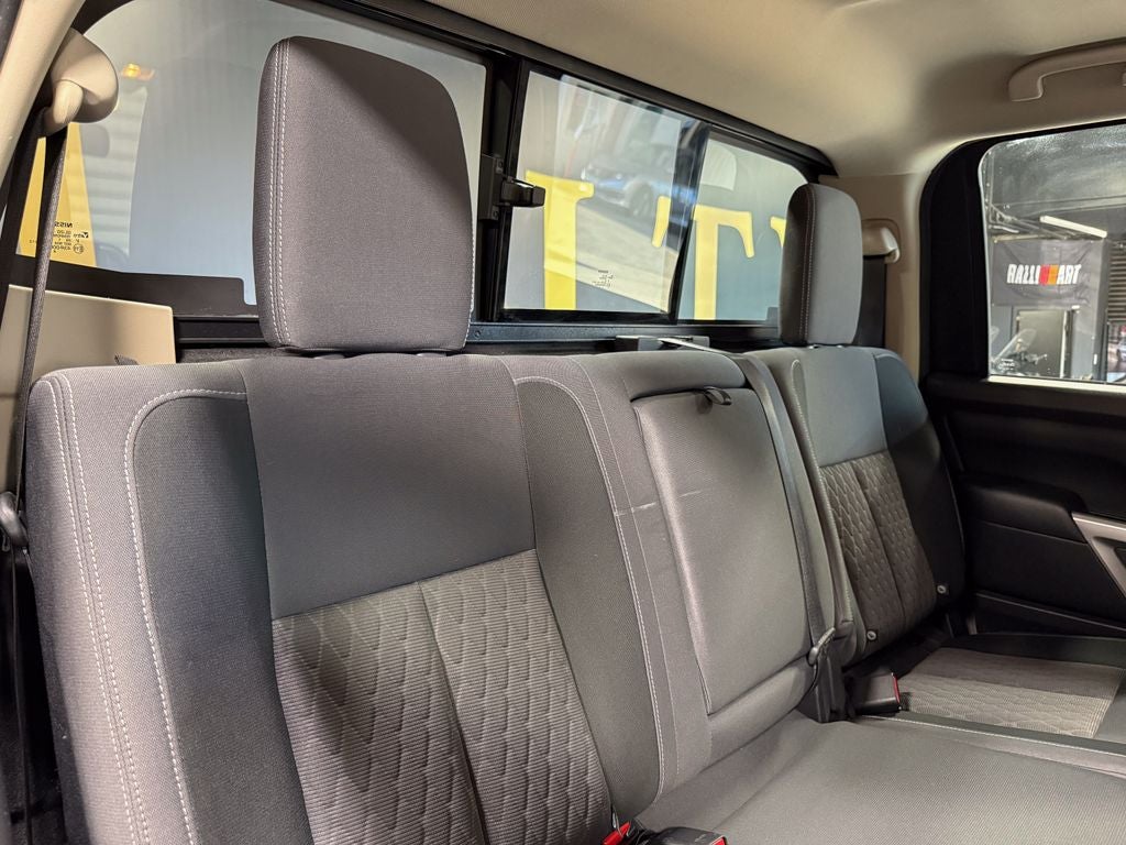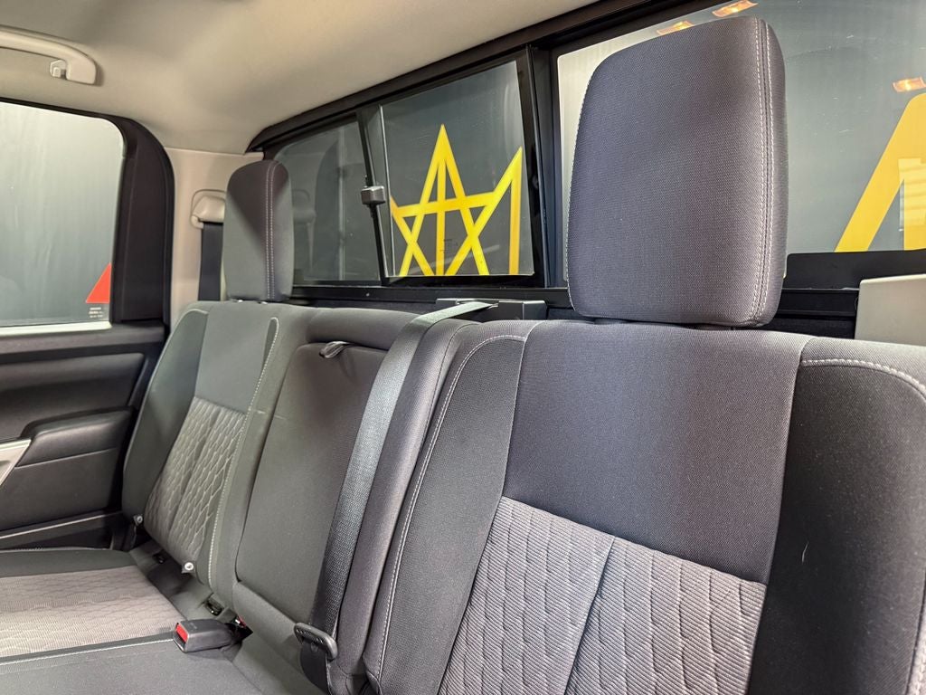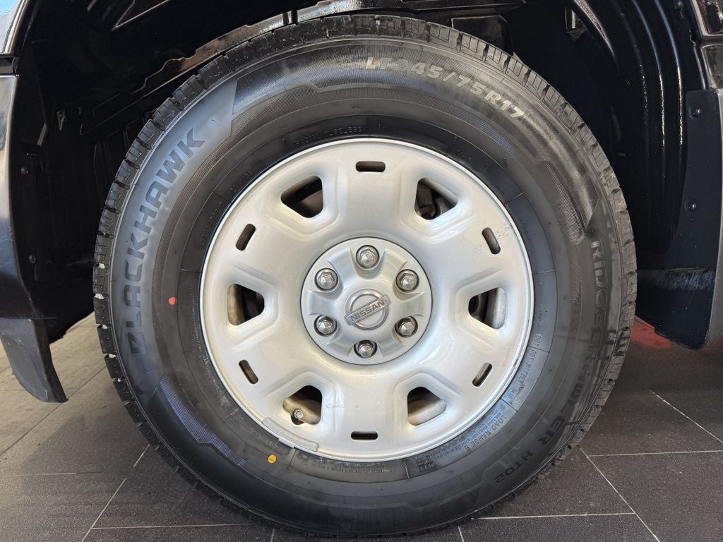 17 Styled Steel Wheels, 4-Wheel Disc Brakes, 4.083 Axle Ratio, 6 Speakers, ABS brakes, Air Conditioning, AM/FM radio: SiriusXM, Auto High-beam Headlights, Blind Spot Warning, Brake assist, Bumpers: chrome, Carpet Floor Mats (L94), Cloth Seat Trim, Driver door bin, Dual front impact airbags, Dual front side impact airbags, Electronic Stability Control, Front anti-roll bar, Front Center Armrest w/Storage, Front Manual Split Bench Seat (40/20/40), Front reading lights, Front wheel independent suspension, Fully automatic headlights, Heated door mirrors, Illuminated entry, Knee airbag, Loop Side Steps, Low tire pressure warning, NissanConnect featuring Apple CarPlay and Android Auto, Occupant sensing airbag, Outside temperature display, Overhead airbag, Overhead console, Panic alarm, Passenger door bin, Passenger vanity mirror, Power door mirrors, Power steering, Power windows, Radio data system, Radio: NissanConnect AM/FM, Radio: NissanConnect w/Navigation, Rear anti-roll bar, Rear Parking Sensors, Rear seat center armrest, Rear step bumper, Rear window defroster, Remote keyless entry, Security system, Speed control, Speed-sensing steering, Speed-Sensitive Wipers, Splash Guards, Split folding rear seat, Steering wheel mounted audio controls, Tachometer, Telescoping steering wheel, Tilt steering wheel, Traction control, Turn signal indicator mirrors, Variably intermittent wipers, and Voltmeter.