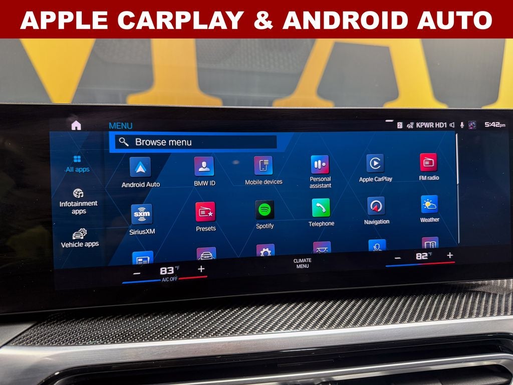 Connected Package Pro, Navigation, Navigation System, 16 Speakers, 4-Wheel Disc Brakes, ABS brakes, Adaptive suspension, Air Conditioning, Alloy wheels, AM/FM radio: SiriusXM with 360L, Apple CarPlay & Android Auto Compatibility, Auto High-beam Headlights, Auto-dimming door mirrors, Auto-dimming Rear-View mirror, Automatic temperature control, BMW Assist eCall, BMW TeleServices, Brake assist, Bumpers: body-color, Carbon Fiber Trim, Compass, ConnectedDrive Services, Delay-off headlights, Driver door bin, Driver vanity mirror, Dual front impact airbags, Dual front side impact airbags, Electronic Stability Control, Emergency communication system: BMW Assist eCall, Extended Merino Leather Upholstery, Extended Shadowline Trim, Exterior Parking Camera Rear, Four wheel independent suspension, Front anti-roll bar, Front Bucket Seats, Front Center Armrest, Front dual zone A/C, Front reading lights, Fully automatic headlights, Garage door transmitter, harman/kardon Surround Sound System, harman/kardon® Speakers, Heated door mirrors, Heated Front Seats, Heated front seats, Illuminated entry, Knee airbag, Leather Shift Knob, Leather steering wheel, Low tire pressure warning, Lumbar Support, M Compound Brakes w/Black Calipers, M Sport Seats, Memory seat, Occupant sensing airbag, Outside temperature display, Overhead airbag, Overhead console, Panic alarm, Passenger door bin, Passenger vanity mirror, Personal eSIM 5G, Power door mirrors, Power driver seat, Power Front Seats, Power passenger seat, Power steering, Power windows, Radio data system, Radio: AM/FM Audio System, Rain sensing wipers, Rear anti-roll bar, Rear reading lights, Rear seat center armrest, Rear window defroster, Remote keyless entry, Security system, SiriusXM w/360L, Speed control, Speed-sensing steering, Speed-Sensitive Wipers, Split folding rear seat, Spoiler, Sport steering wheel, Steering wheel mounted audio controls, Tachometer, Telescoping steering wheel, Tilt steering wheel, Traction control, Trip computer, Turn signal indicator mirrors, Variably intermittent wipers, Wheels: 18 x 9.5 Fr/19 x 10.5 Rr M Double-Spk, Wheels: 19 x 9.5 Fr/20 x 10.5 Rr Orbit Grey, and Widescreen Display.