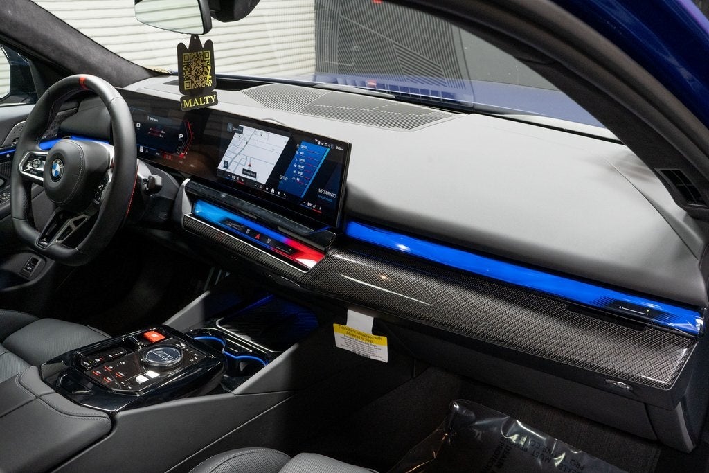 Connected Package Pro, Driving Assistance Professional Package (Active Driving Assistant Pro), Executive Package (BMW Iconic Glow Kidney Grille, Front & Rear Heated Seats, Front Ventilated Seats, Interior Camera, Parking Assistant Plus, and Power Rear Sunshade & Rear Side Window Shades), Black Leather, 18 Speakers, 4-Wheel Disc Brakes, ABS brakes, Adaptive suspension, Air Conditioning, Alloy wheels, AM/FM radio: SiriusXM, Apple CarPlay & Android Auto Compatibility, Auto High-beam Headlights, Auto tilt-away steering wheel, Auto-dimming door mirrors, Auto-dimming Rear-View mirror, Automatic temperature control, BMW Assist eCall, BMW Curved Display w/HUD, BMW TeleServices, Bowers & Wilkins Surround Sound, Brake assist, Bumpers: body-color, Carbon Fiber Silver Thread High Gloss Trim, ConnectedDrive Services, Delay-off headlights, Driver door bin, Driver vanity mirror, Dual front impact airbags, Dual front side impact airbags, Electronic Stability Control, Emergency communication system: BMW Assist eCall, Extended Merino Leather Upholstery, Exterior Parking Camera Rear, Four wheel independent suspension, Front anti-roll bar, Front Bucket Seats, Front Center Armrest, Front dual zone A/C, Front reading lights, Fully automatic headlights, Garage door transmitter, Heads-Up Display, Heated door mirrors, Heated Front Seats, Heated front seats, Heated steering wheel, Illuminated entry, Leather steering wheel, Low tire pressure warning, M Compound Brakes w/Black Calipers, M Multi-Function Seats, Memory seat, Navigation System, Occupant sensing airbag, Outside temperature display, Overhead airbag, Panic alarm, Passenger door bin, Passenger vanity mirror, Personal eSIM 5G, Power door mirrors, Power driver seat, Power Front Seats, Power passenger seat, Power steering, Power windows, Radio data system, Radio: AM/FM Audio System, Rain sensing wipers, Rear air conditioning, Rear anti-roll bar, Rear dual zone A/C, Rear reading lights, Rear seat center armrest, Rear window defroster, Remote keyless entry, Security system, SiriusXM Satellite Radio w/1-Year Subscription, Speed control, Speed-sensing steering, Speed-Sensitive Wipers, Split folding rear seat, Sport steering wheel, Steering wheel memory, Steering wheel mounted audio controls, Tachometer, Telescoping steering wheel, Tilt steering wheel, Traction control, Trip computer, Turn signal indicator mirrors, Variably intermittent wipers, Wheels: 20 x 10.5 Fr & 21 x 11 Rr Jet Black, Wheels: 20 x 10.5 Fr & 21 x 11 Rr M Dual-Spoke, and Wireless Device Charging.